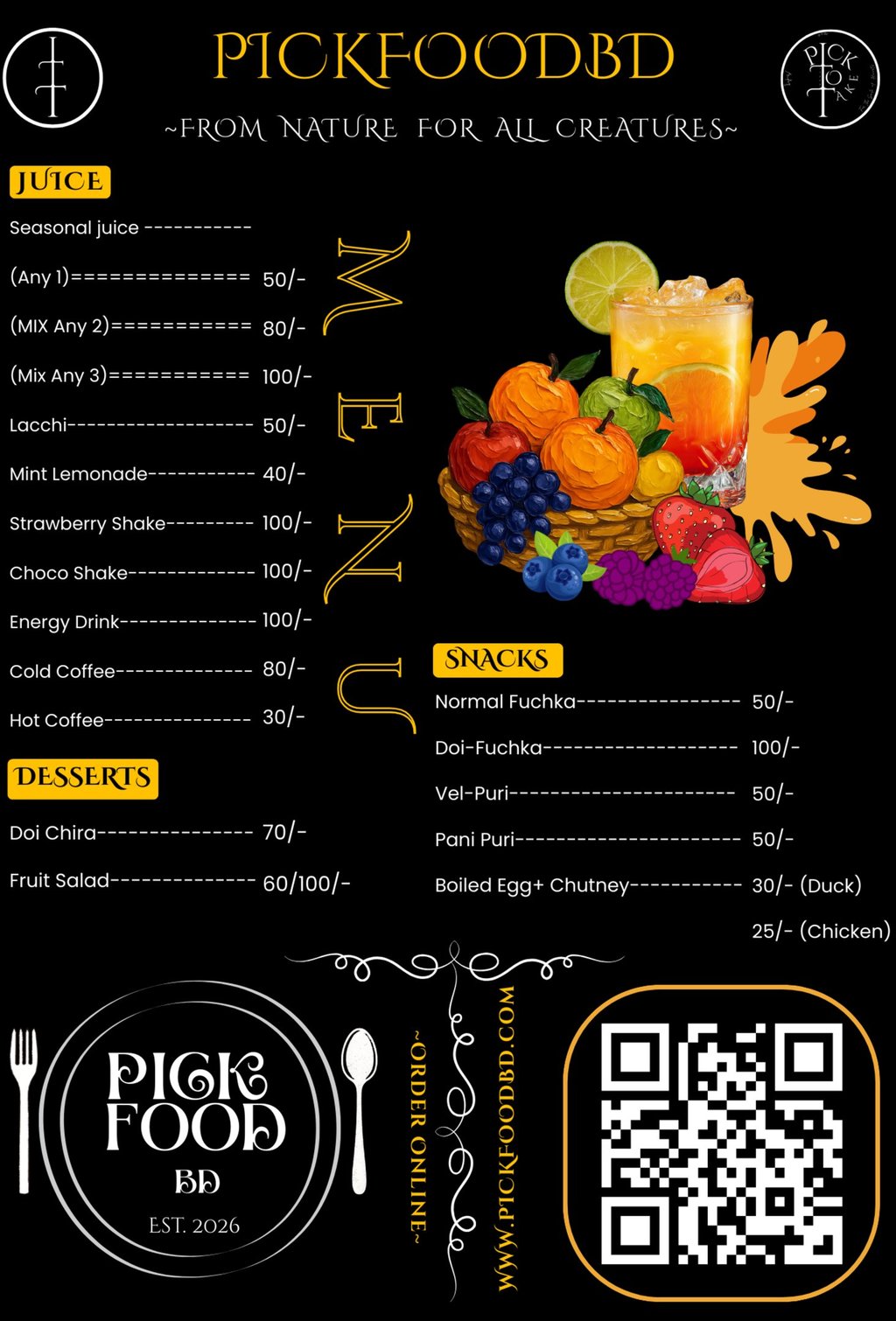 At Pickfood, every dish is crafted with care to delight your senses and bring warmth to your taste~